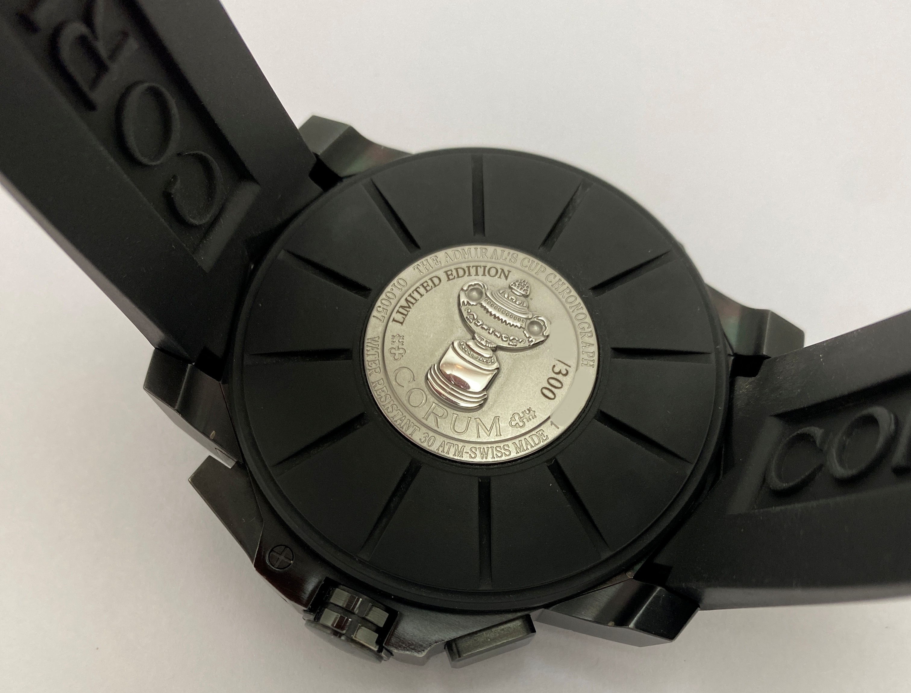 Завинчивающаяся прорезиненная задняя крышка из титана с черным PVD-покрытием, рельефная гравировка кубка Адмирала