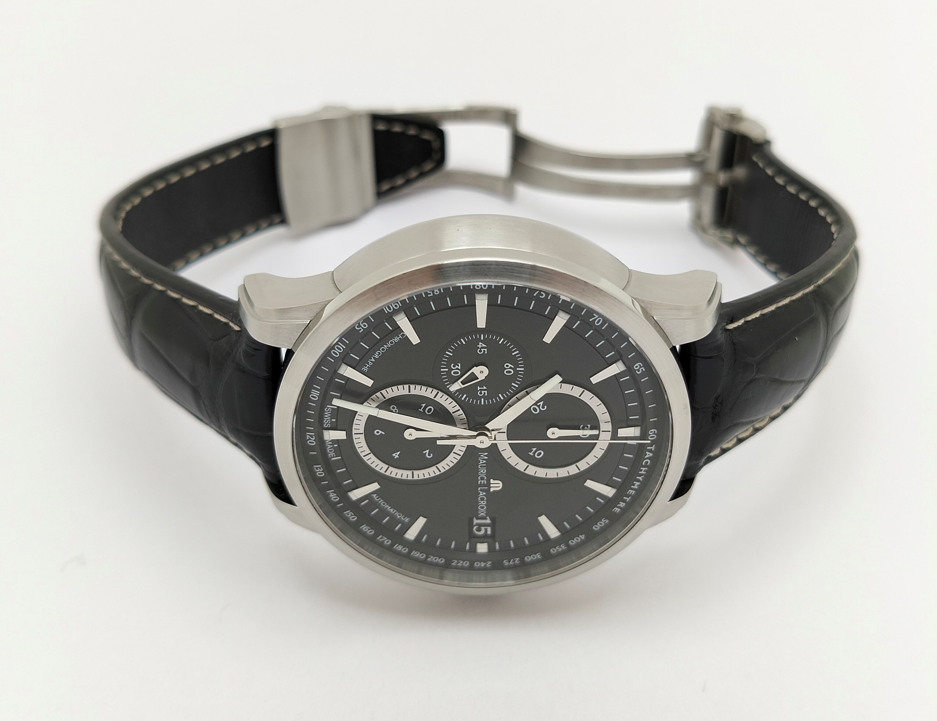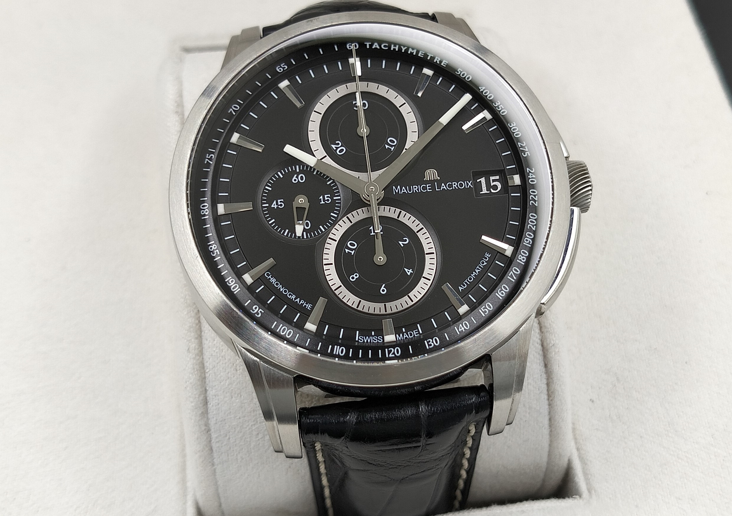 Maurice Lacroix Pontos Automatic Chronograph Valgranges 47mm – это стильные мужские часы, которые сейчас можно купить в салоне по низкой цене. Данная модель в идеальном состоянии, потому прослужит своему новому владельцу долго.