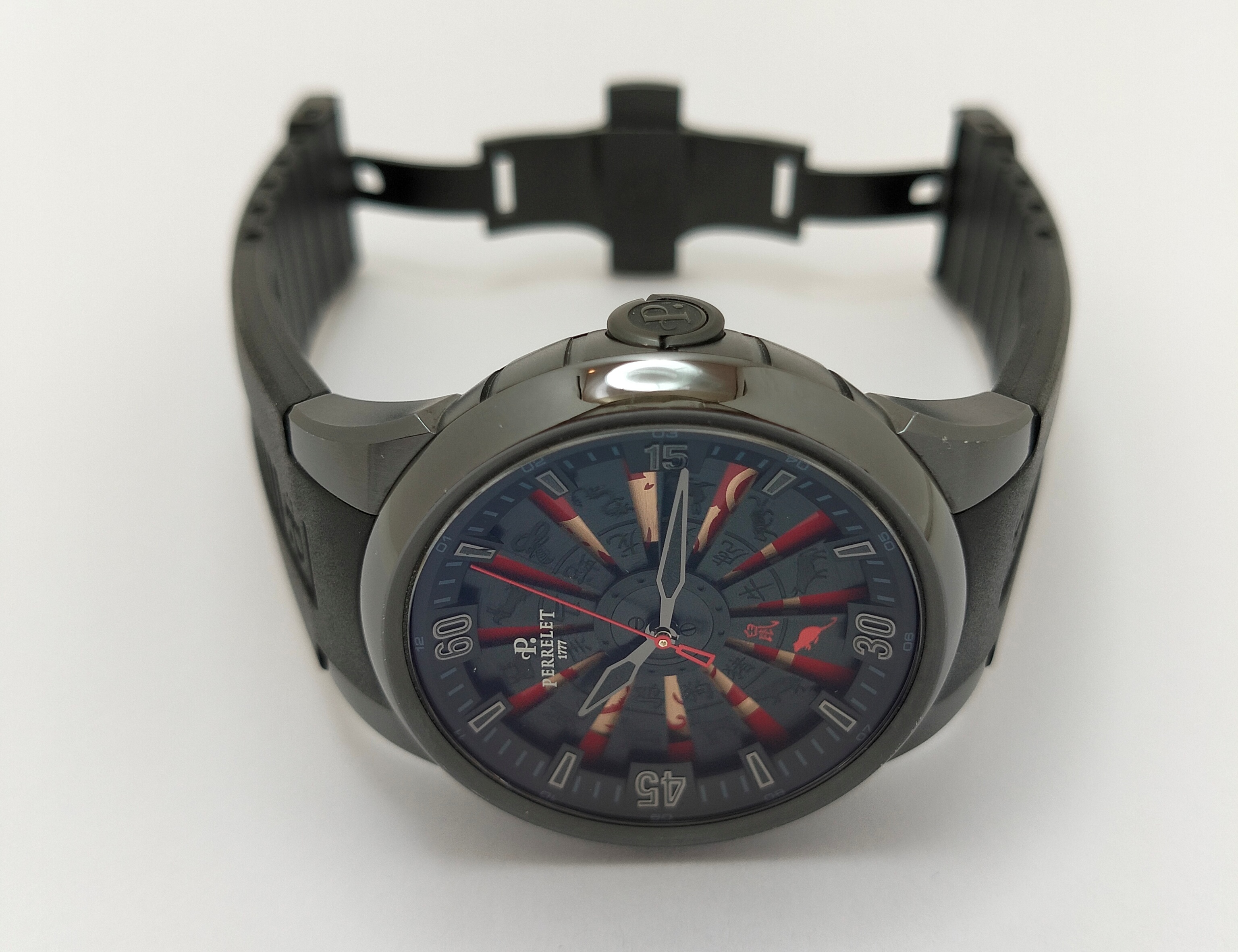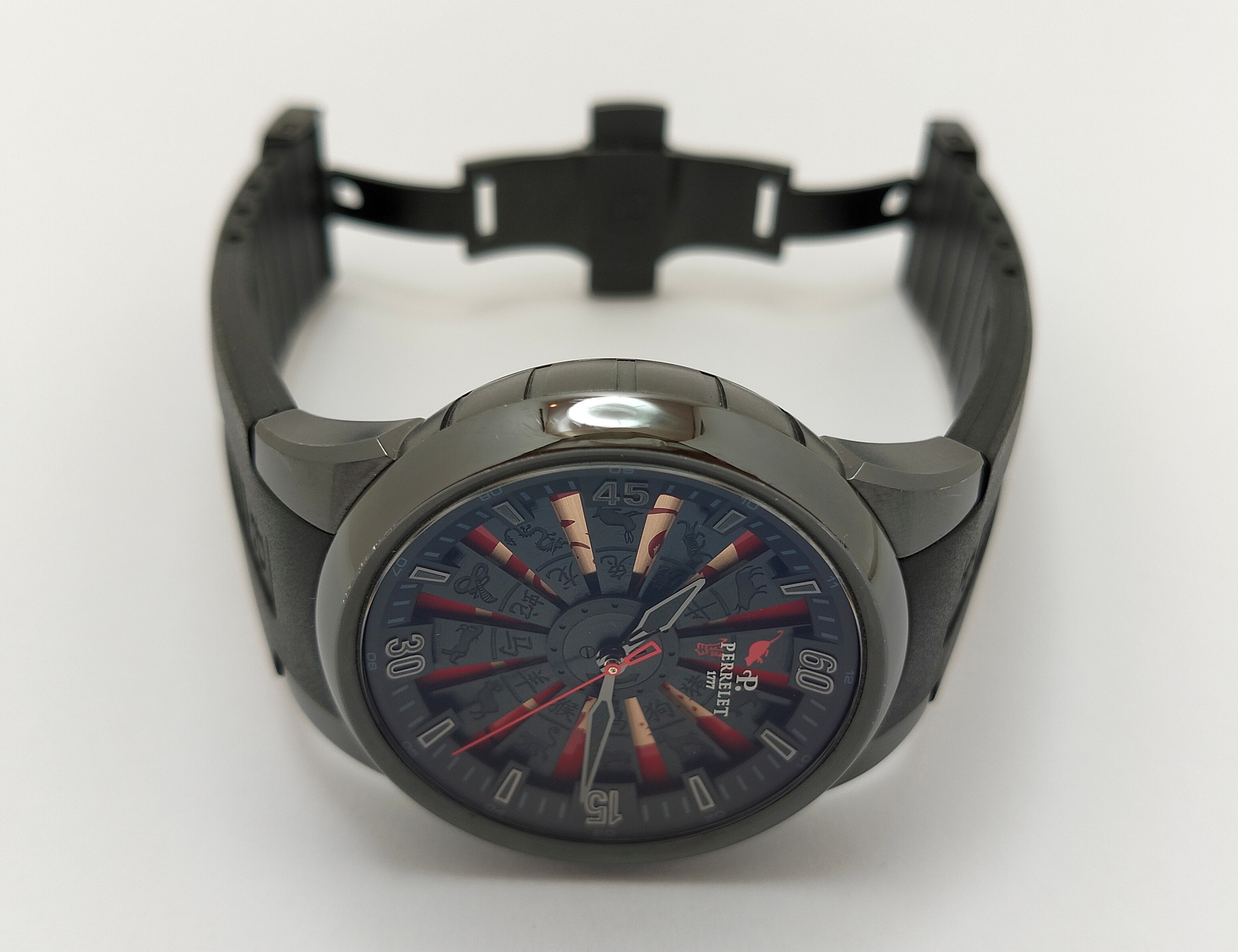 С видимым ротором автоподзавода Double Rotor, стилизованным под лопаcnb турбины самолета, которые украшены гравировкой с китайскими знаками зодиака