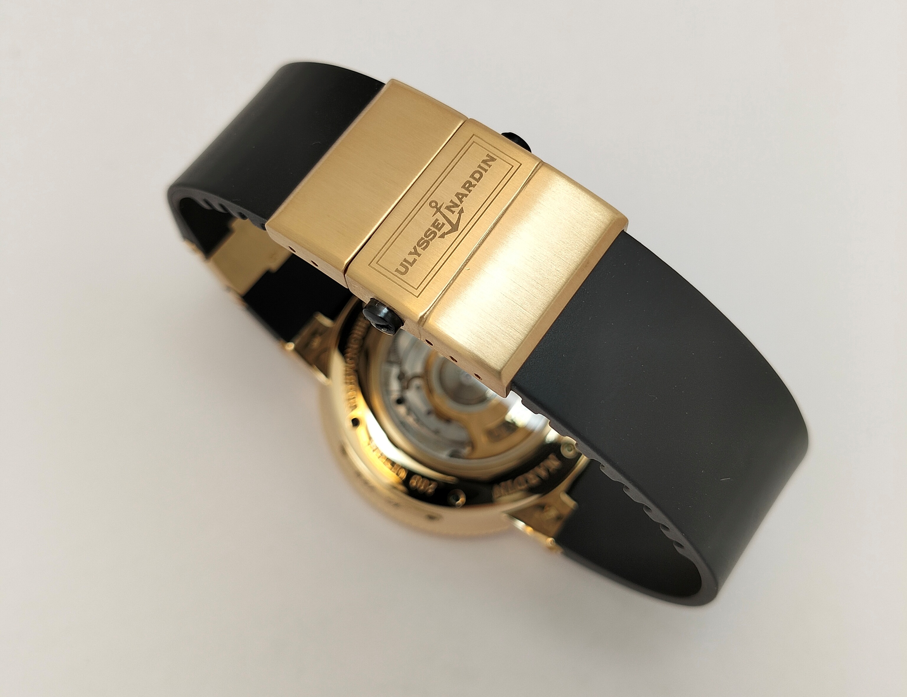 Винтовая заводная головка защищает механизм от влаги. Закрученная головка создаёт герметичность при погружении. Задняя крышка крепится шестью винтами. В крышке есть прозрачное окно. Оно позволяет видеть работу калибра UN-26.